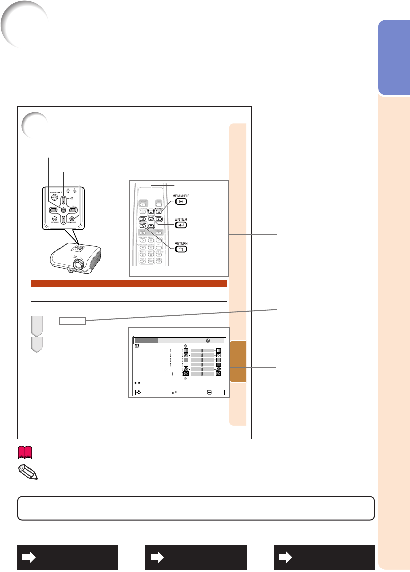 • This operation can also be performed by using the buttons on the projector.