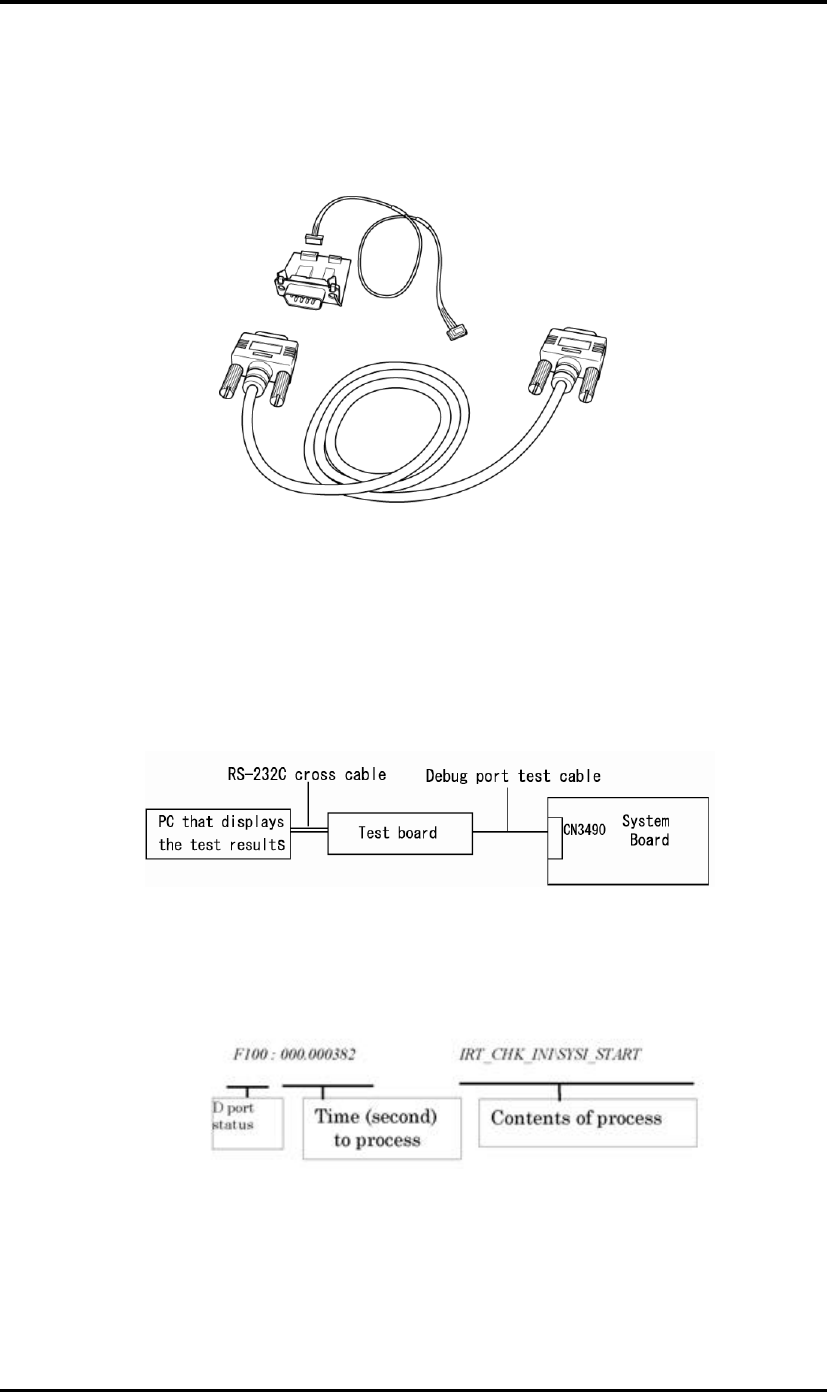 2. Connect the debug port test cable and RS-232C cross cable to the test board.