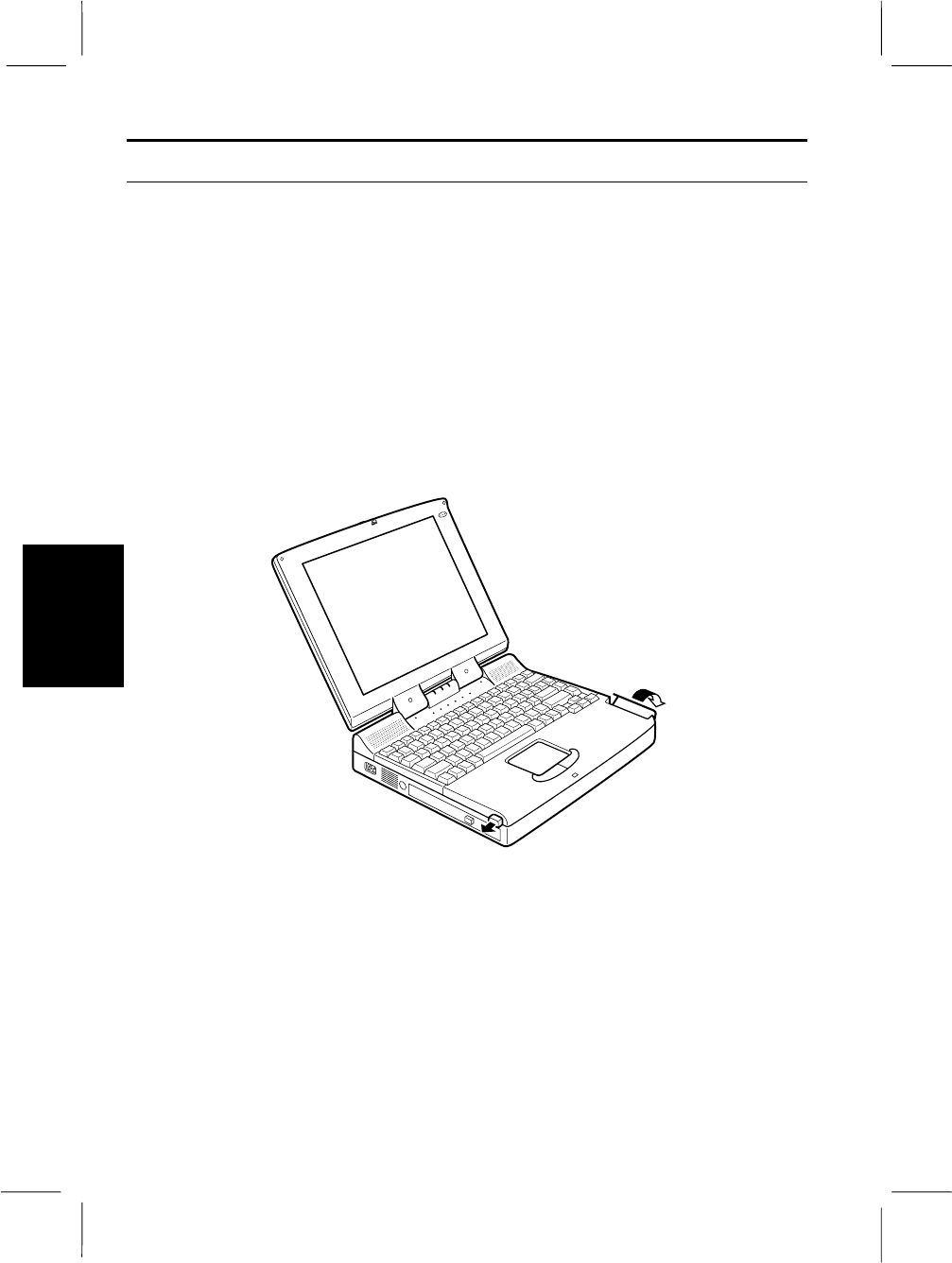 2. Pull out the locking knob on the left side of the notebook, and open the PC card