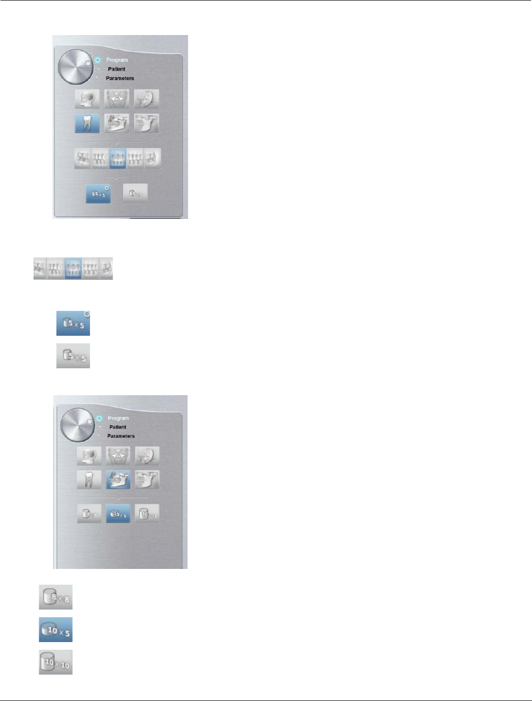 Teeth buttons: Select a group of teeth to be included in the exam. Upper
