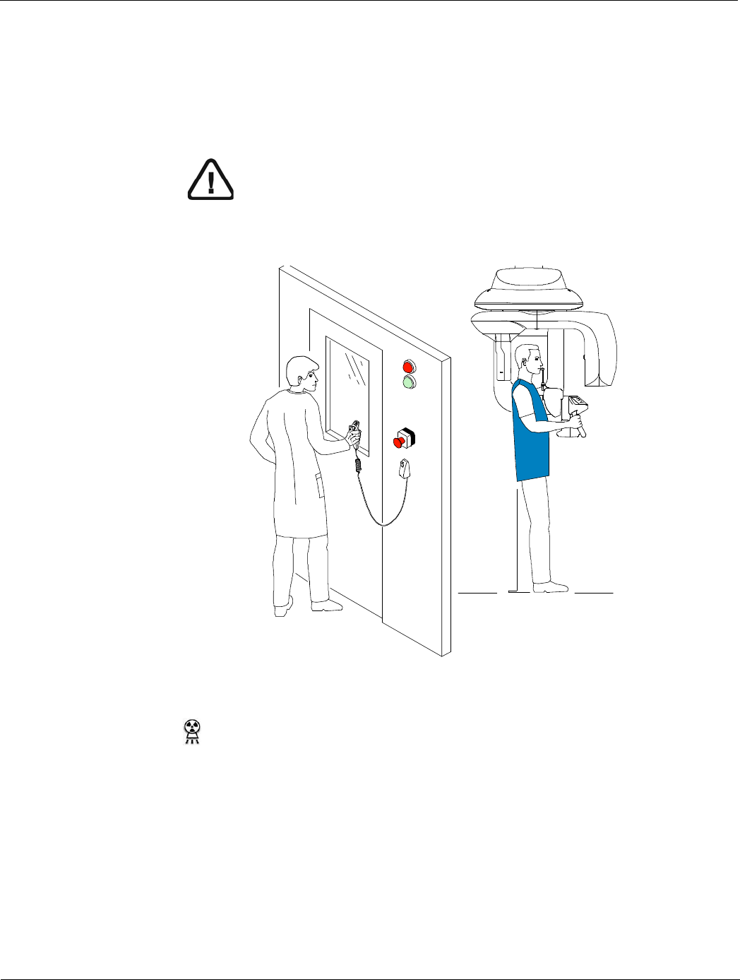 1. Leave the x-ray room and close the door. You must keep visual contact with the