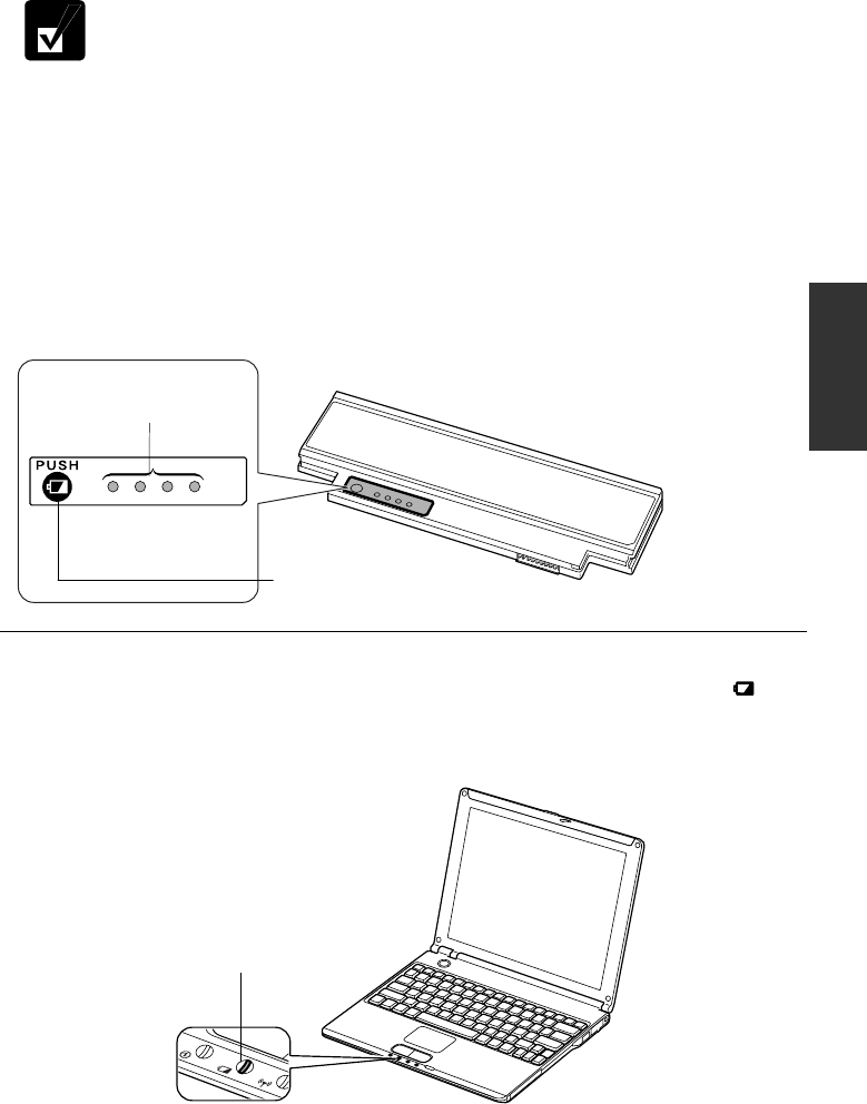 Remove the battery pack from your computer and push the battery level button on the