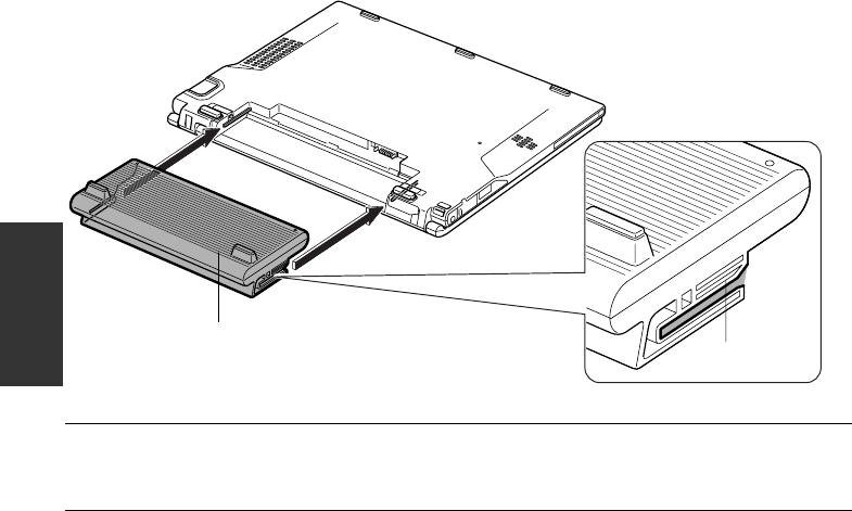 5. Insert the high capacity battery pack into the computer by matching the notched
