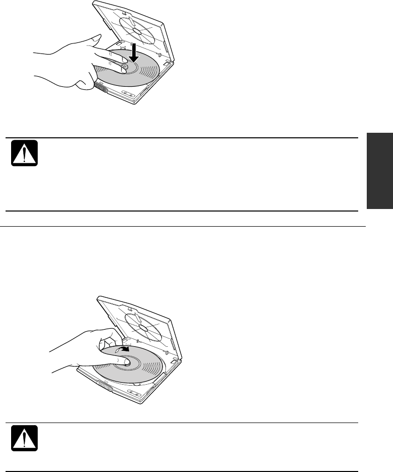 • Insert a CD firmly until it is locked onto the spindle; then, close the