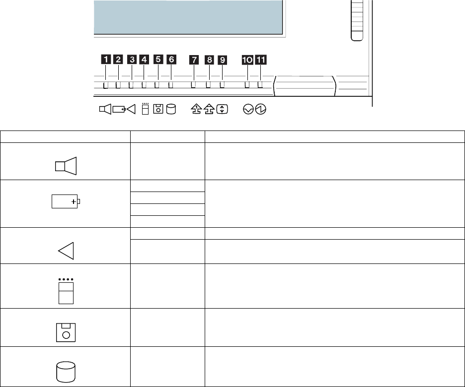 4 PC card active Orange Turns on when power is supplied to the PCMCIA slot. Refer to the