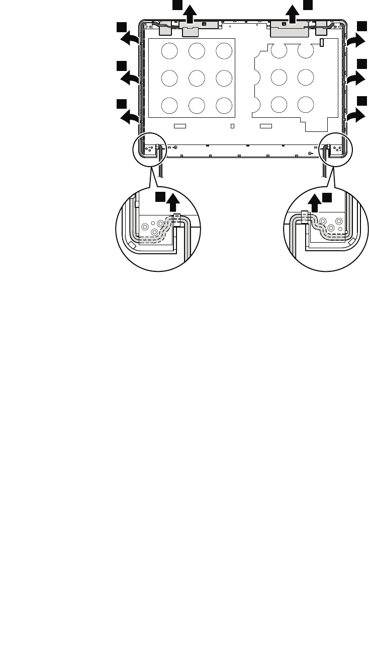 ReleasetheantennacablesfromthecableguidesoftheLCDrearcoverassemblyandfromthehinges.