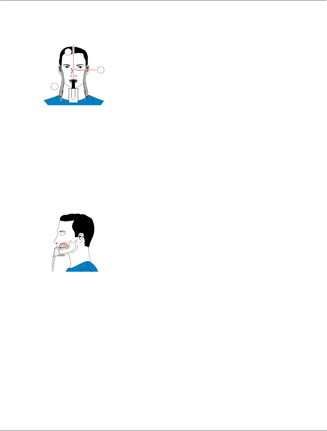 8. Immobilize the patient head with the temple supports (3). Tighten the temple supports