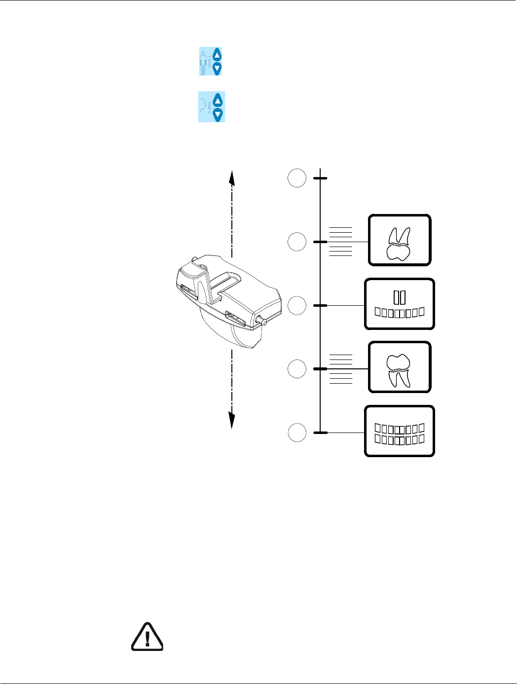6. Press and hold to adjust the chin rest according to the desired exam type