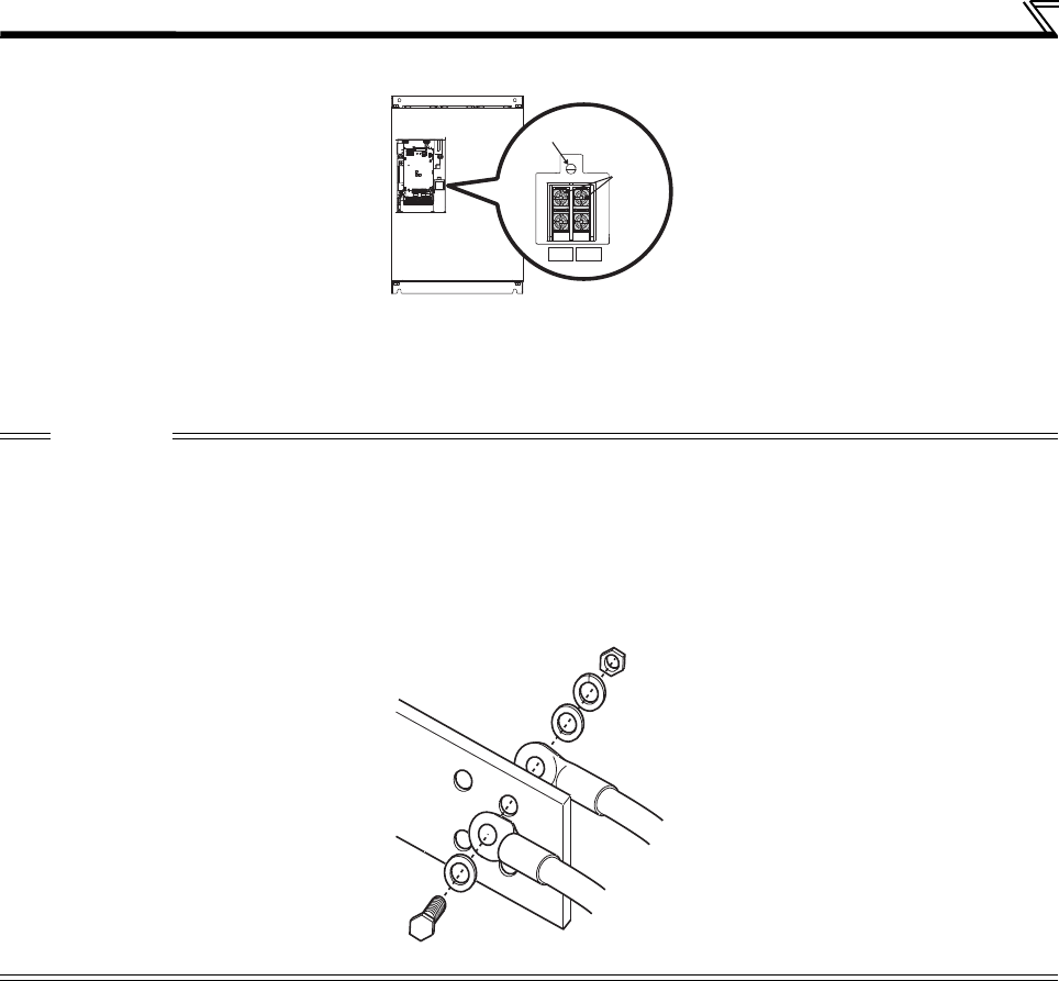 When wiring the inverter main circuit conductor of the FR-A840-05470(220K) or higher, tighten a nut from the right side