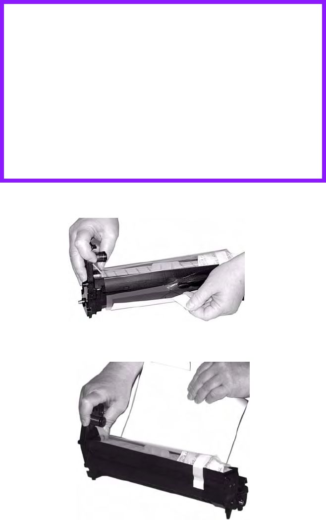 5. Grasp the white tape tab and peel the tape off the drum.
