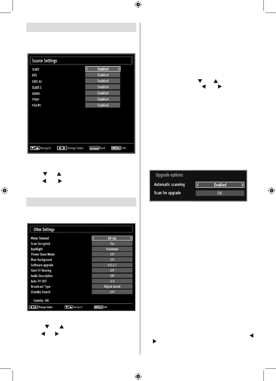 Select • Sources in the Settings menu and press OK