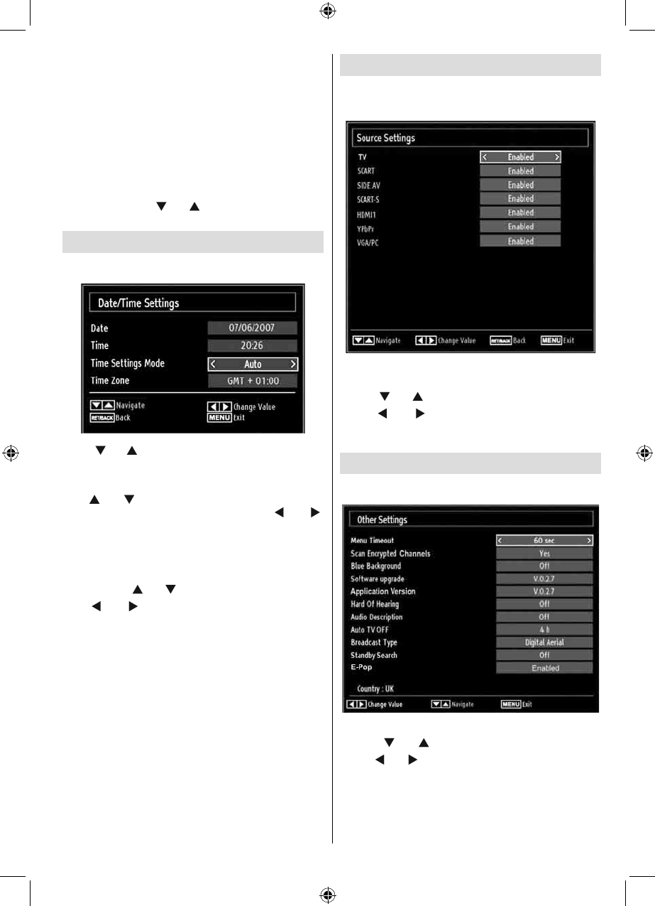 Select • Sources in the Settings menu and press OK