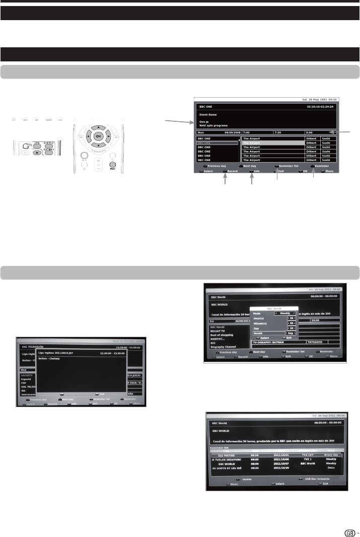 channels, view detailed information about it, tune to an event currently on-air and set a timer for future events.