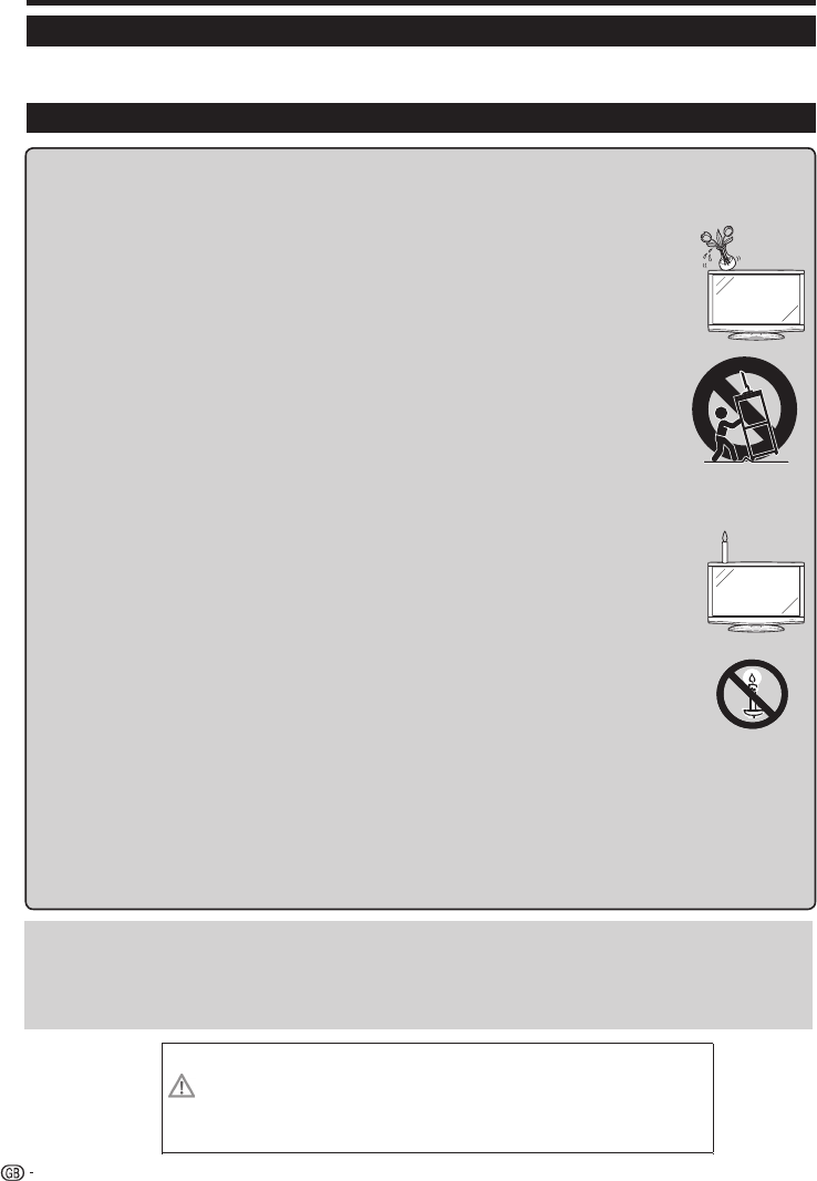 • To prevent fire, never place any type of candle or naked flames on the top or near the TV set.