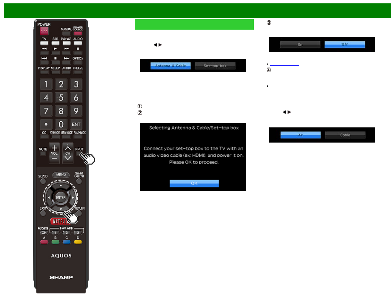 when selecting "Air" or "Cable".