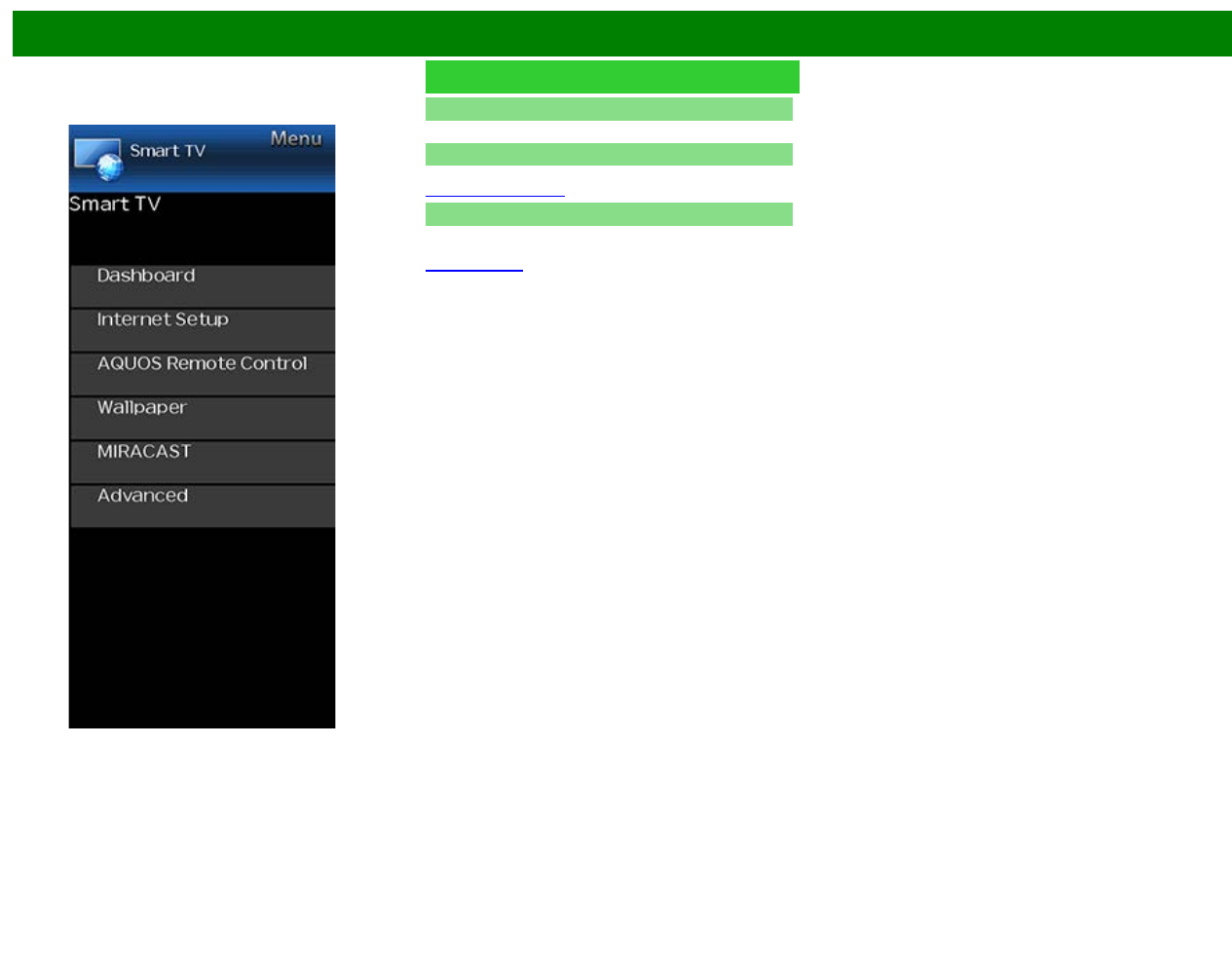 You can display a list of the main Smart TV settings.