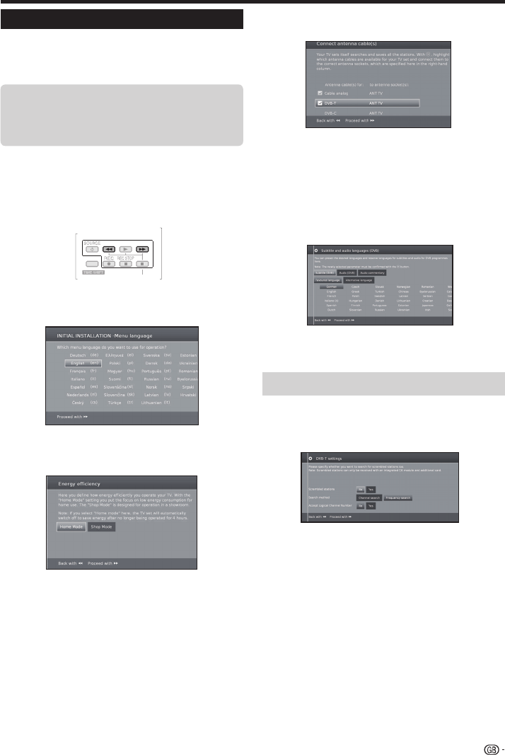 • The auto installation can also be called in the TV menu,