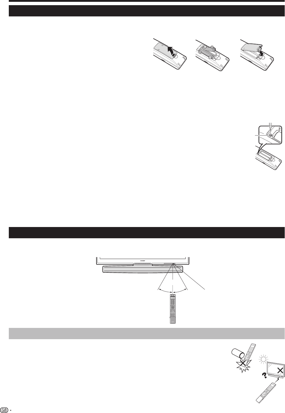 Before using the TV for the first time, insert two supplied “AAA” size alkaline batteries. When the batteries become
