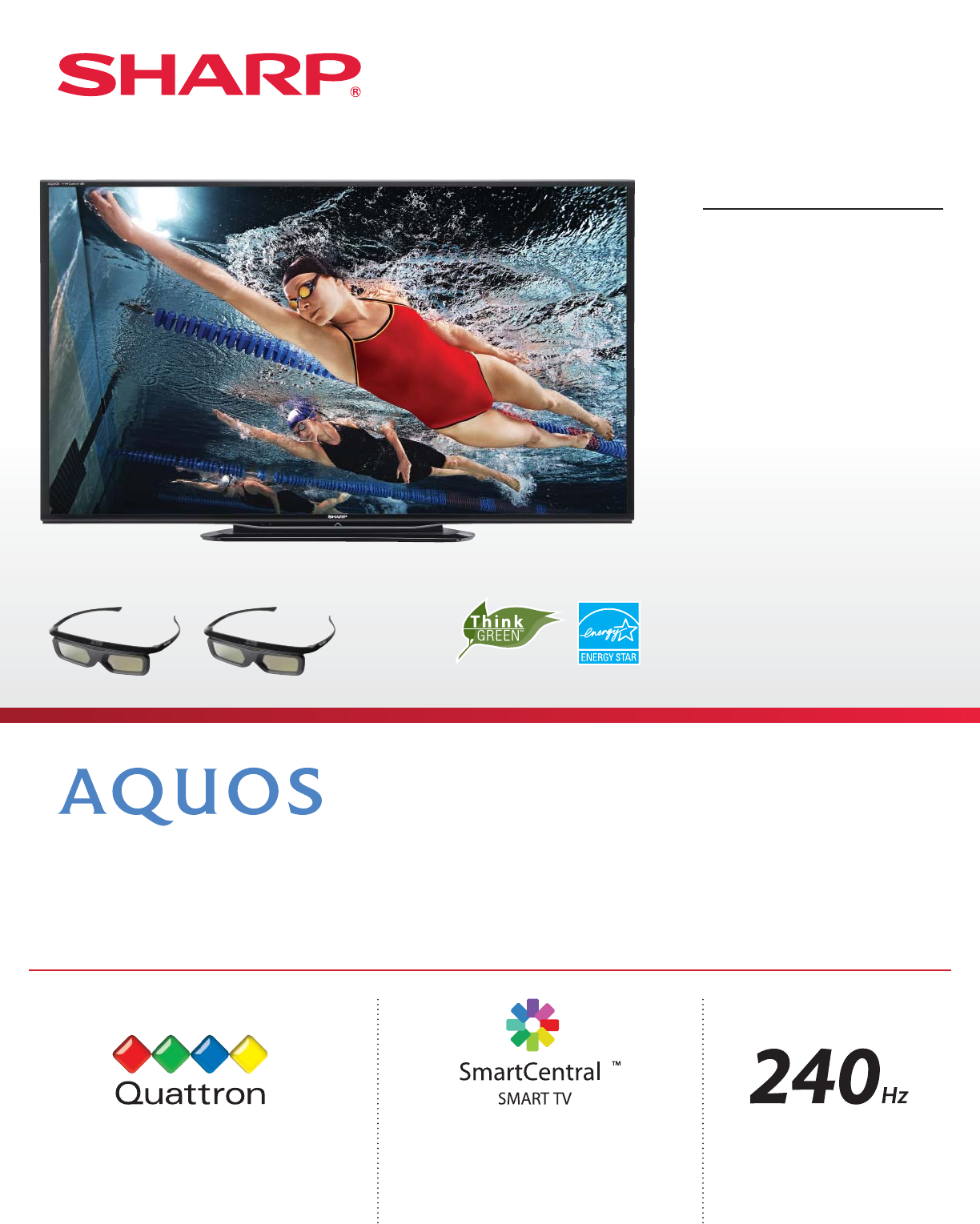 features Sharp’s proprietary Quattron color technology for a billion more colors, so