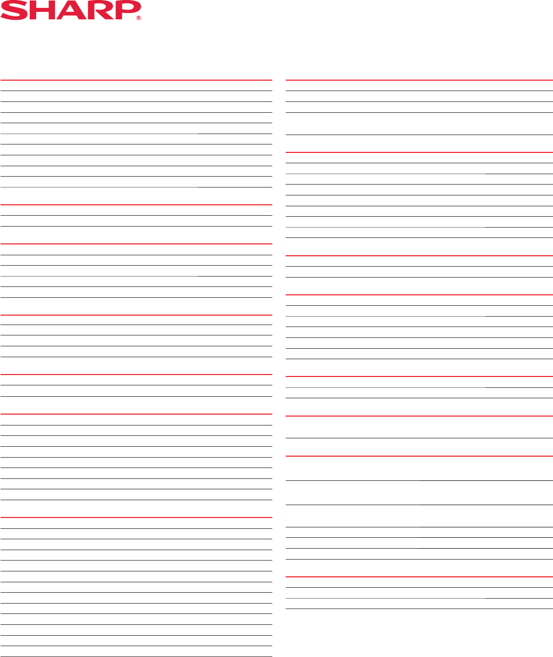 Sharp, AQUOS and all related trademarks are trademarks or registered trademarks of Sharp