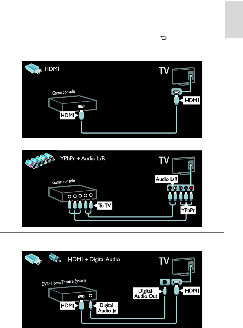 Connect the game console with a component cable (Y Pb Pr) and an audio L/R cable to the TV.