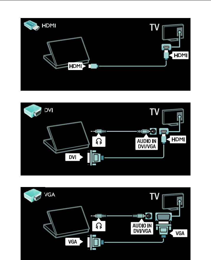 Connect the computer with a DVI-HDMI cable to the TV.