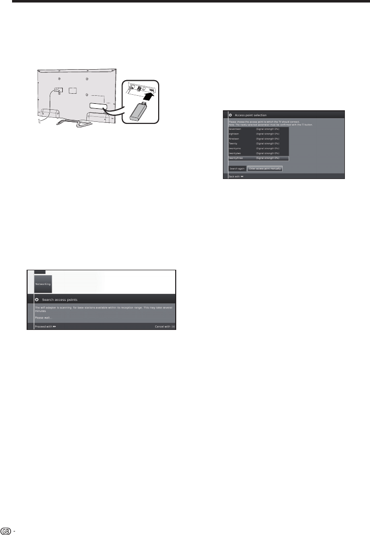 • A wireless LAN access point is required to connect the TV to