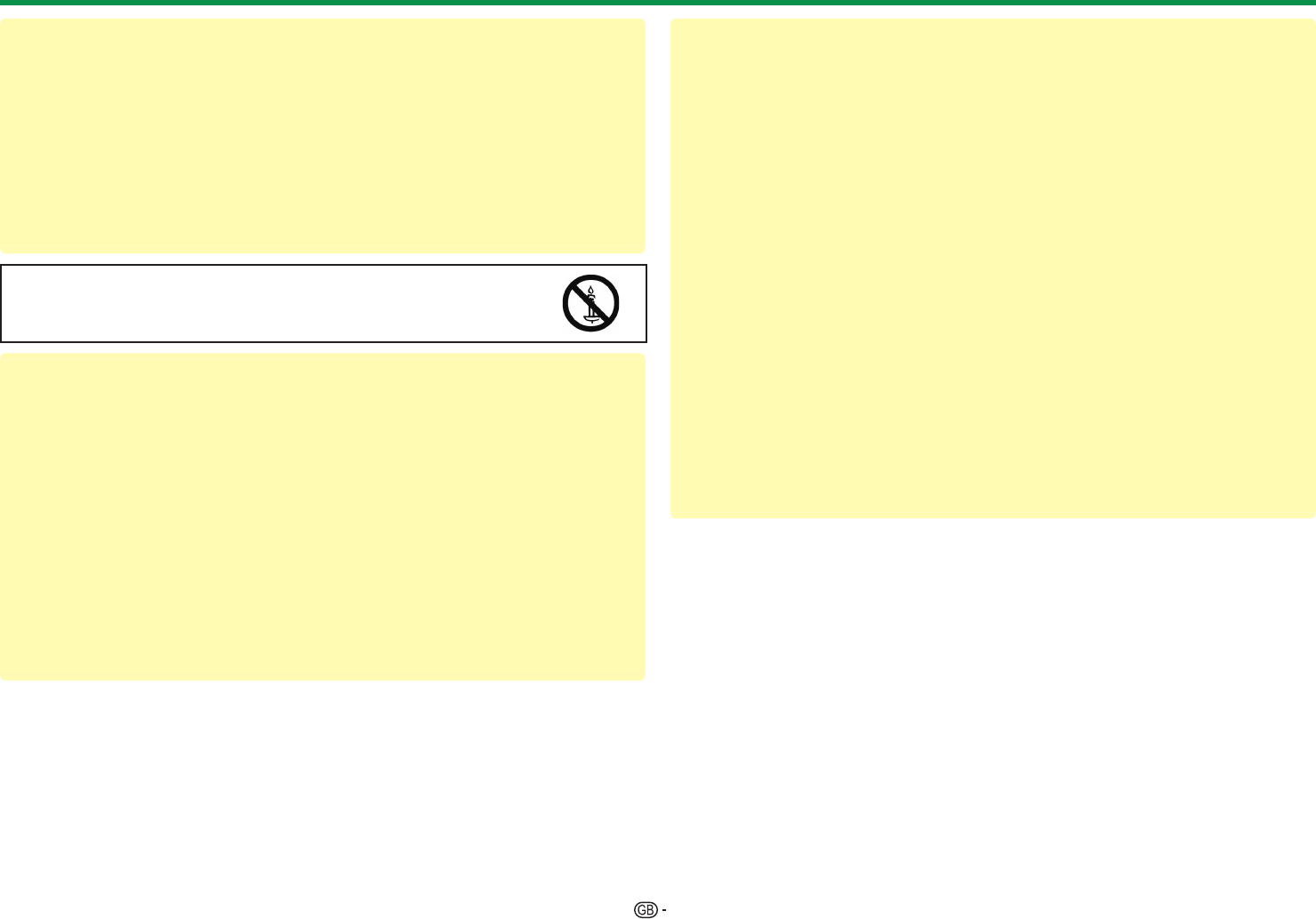 • Batteries must not be exposed to excessive heat such as direct sunlight or fire.