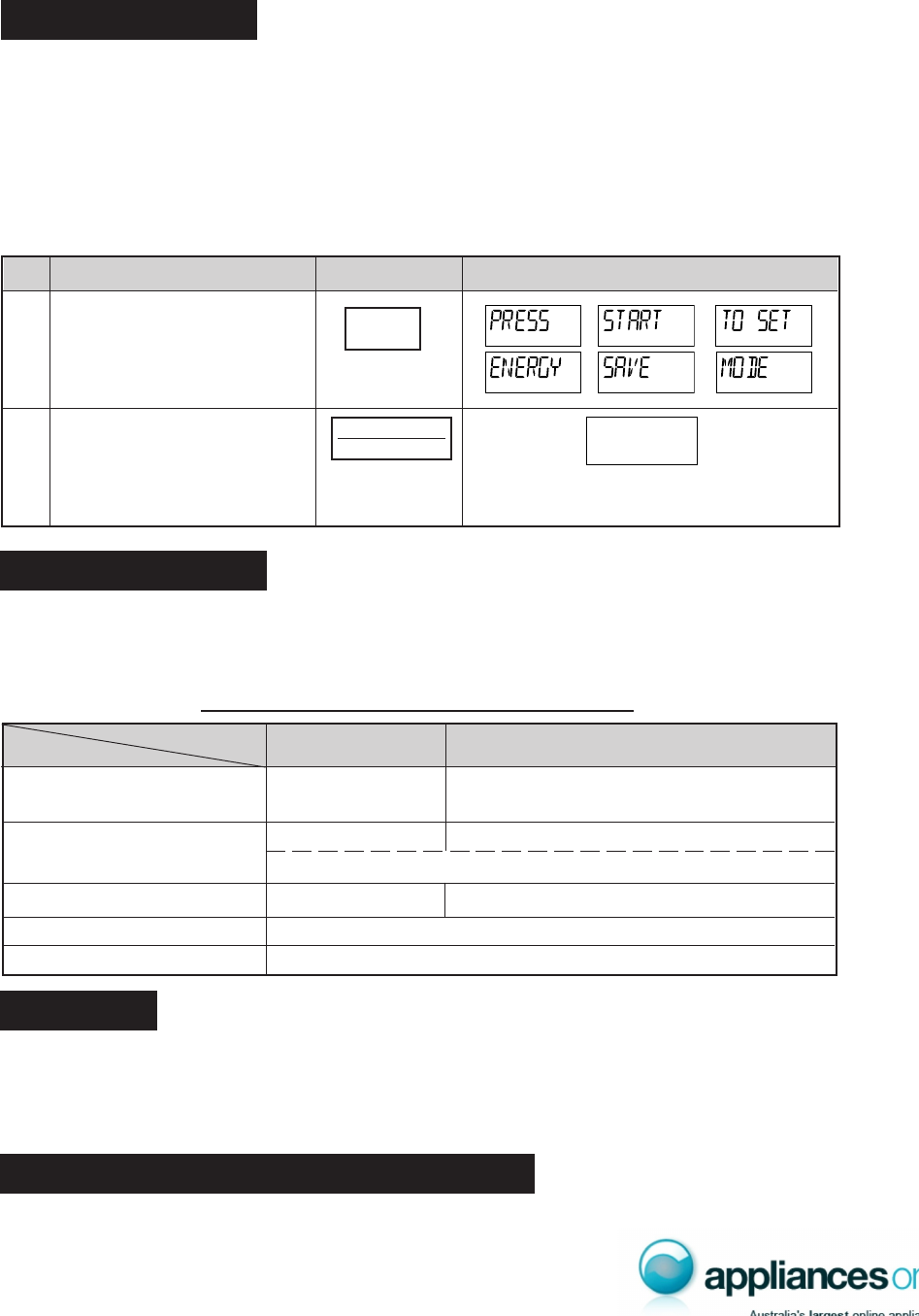Auto Start, and Demonstration Mode will be cancelled. The Display in Clock Set mode and Energy Save Mode