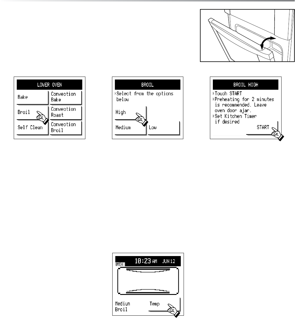 suggested for rare steaks. To preheat, touch Broil and wait 2 to 3 minutes before