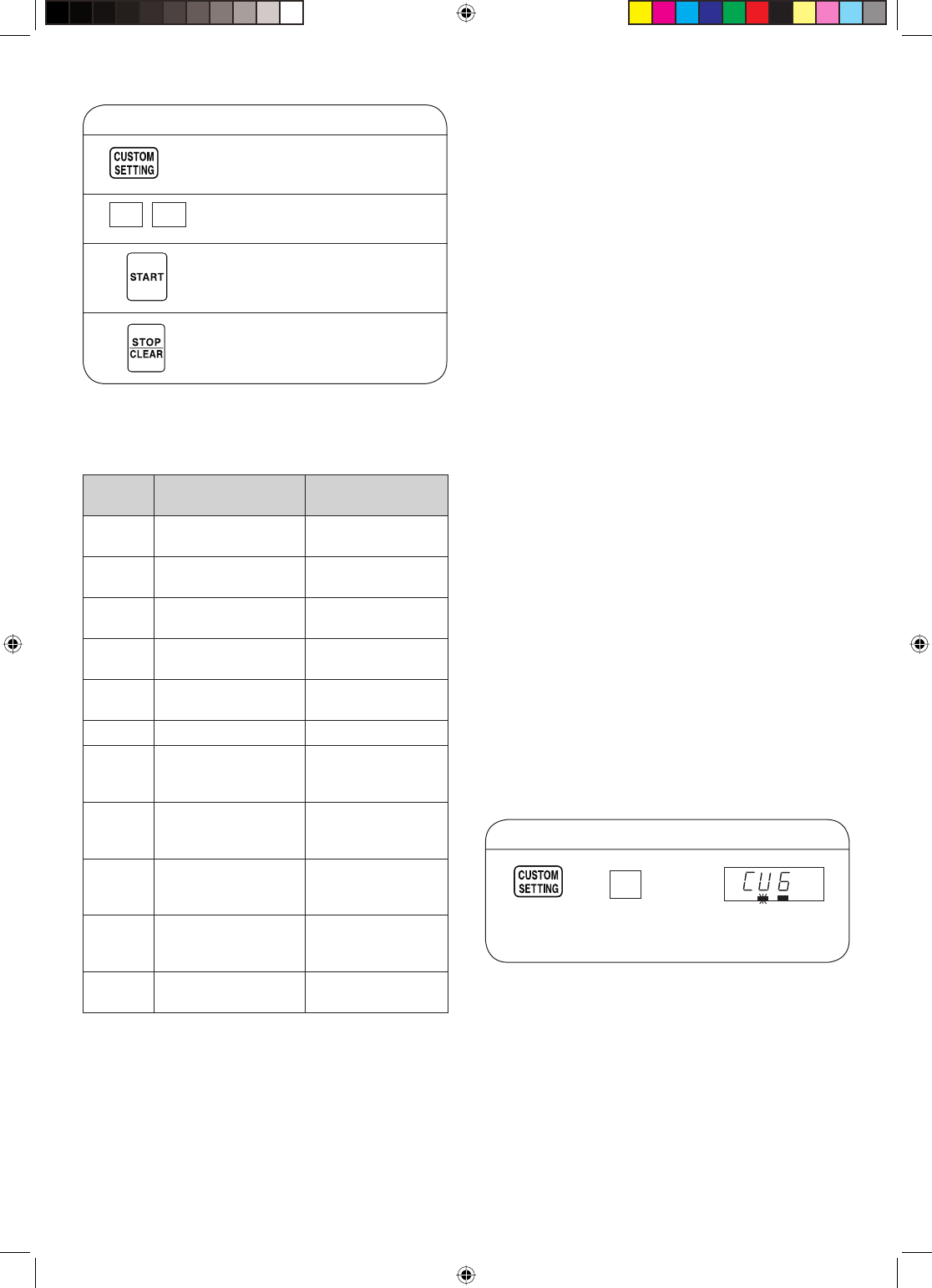 pad to exit from the Custom Setting function.