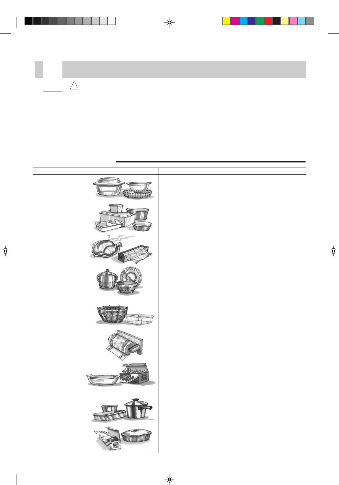 For microwaving, use only those utensils suitable for microwave cookery as indicated below.