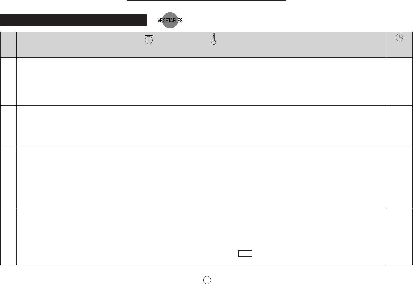 The final cooking result will vary according to the food condition (e.g. initial temperature, shape, quality). Check the food after cooking and if necessary continue cooking manually.
