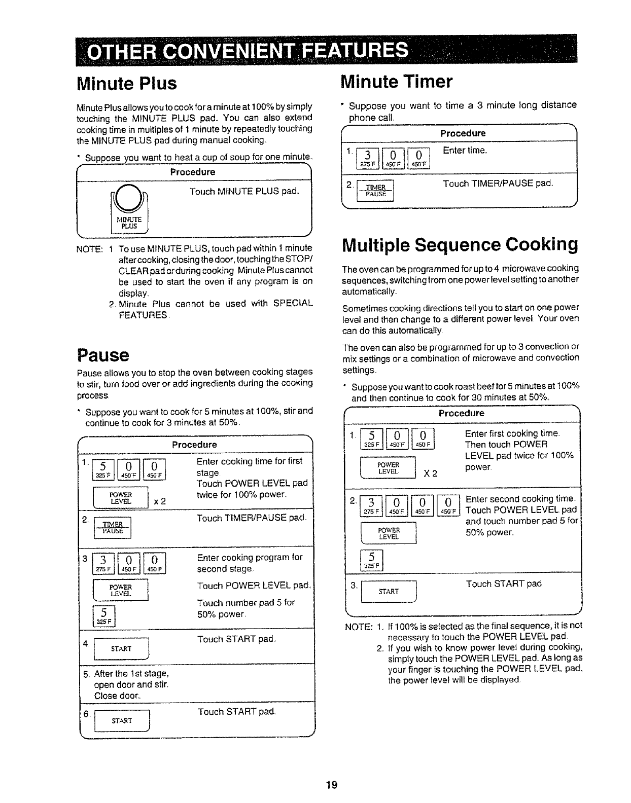NOTE: 1 To use MINUTE PLUS, touch pad within t minute