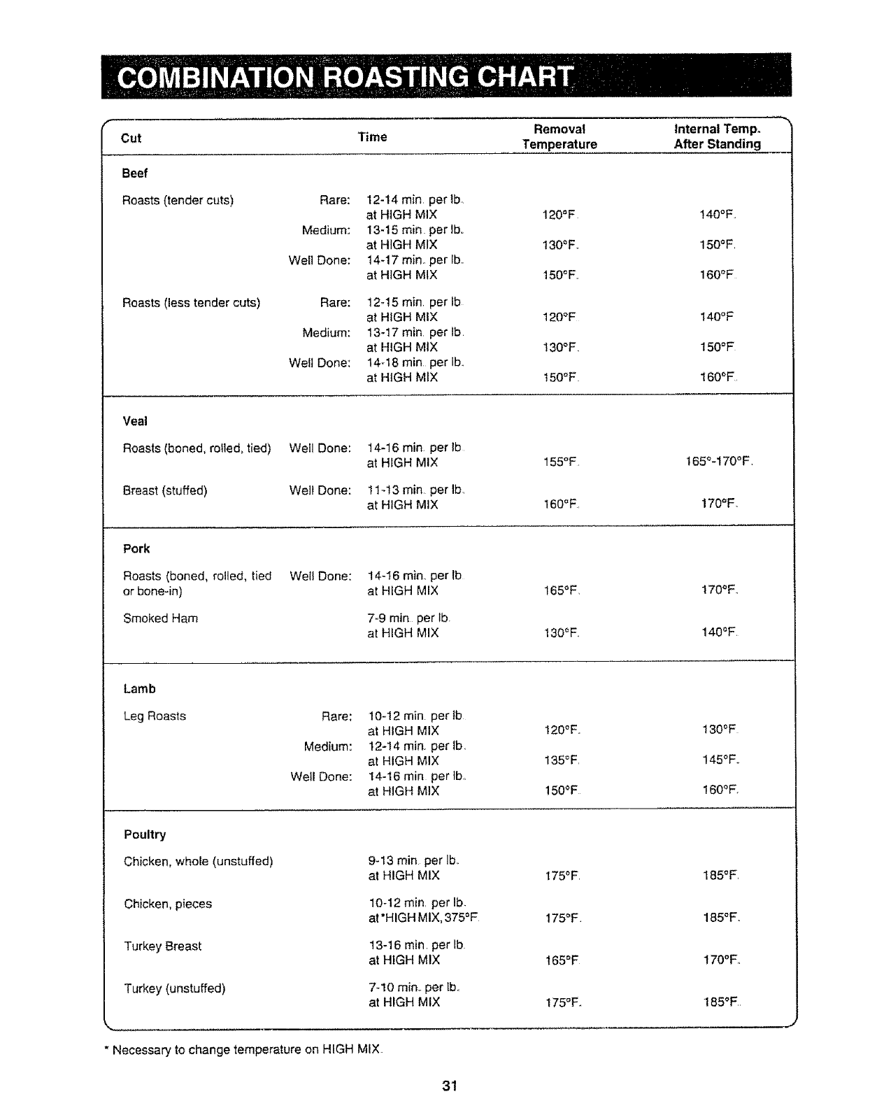 " Necessary to change temperature on HiGH MIX