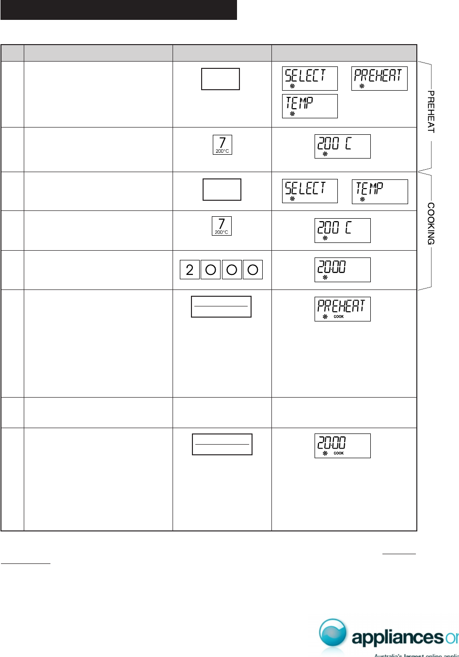 * Suppose you want to preheat the oven to 200°C then cook for 20 minutes at 200°C.