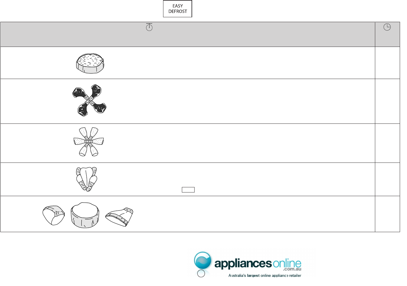 • After defrost time, stand covered with aluminium foil.