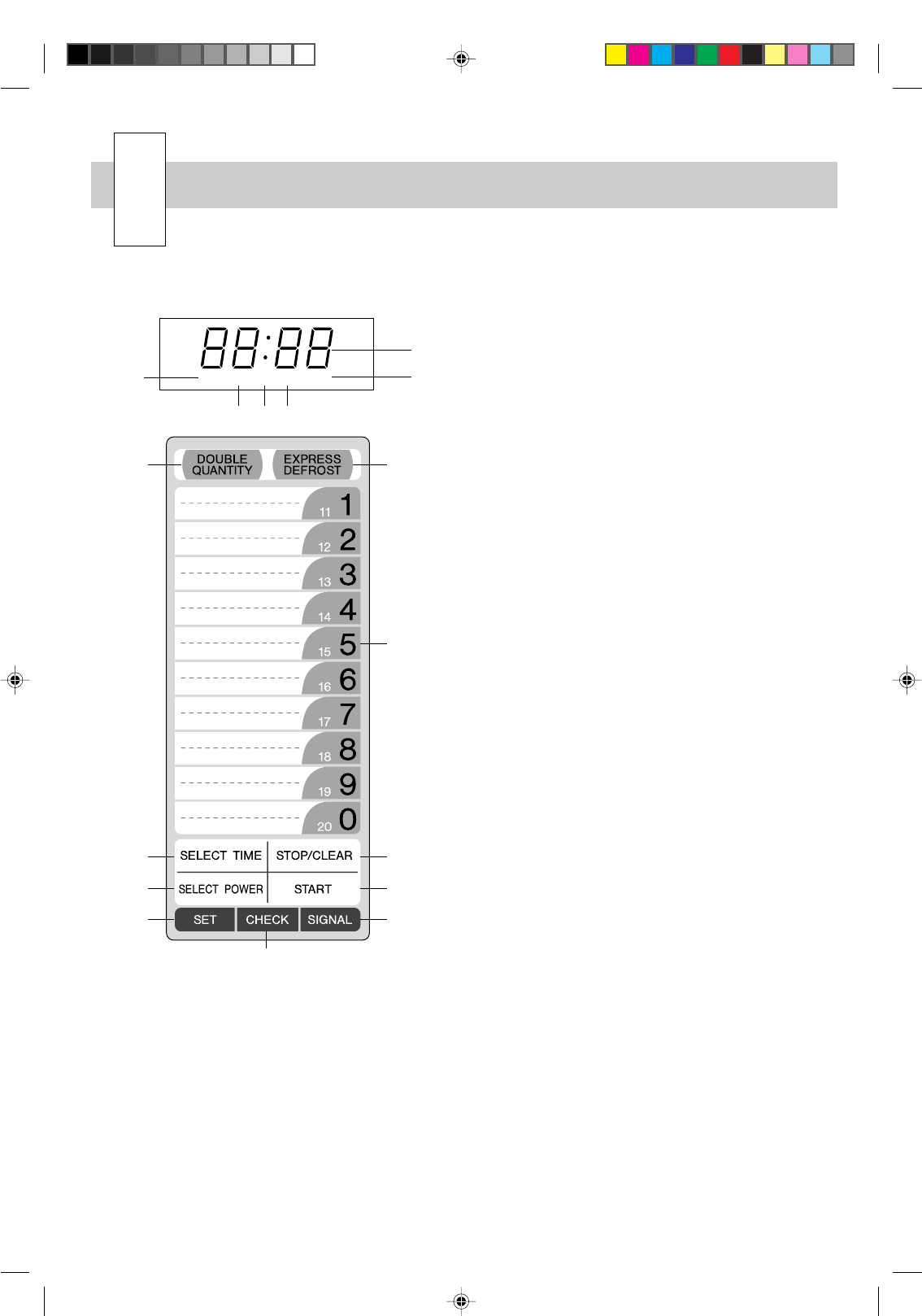 A STOP/CLEAR pad; press to stop opera-
