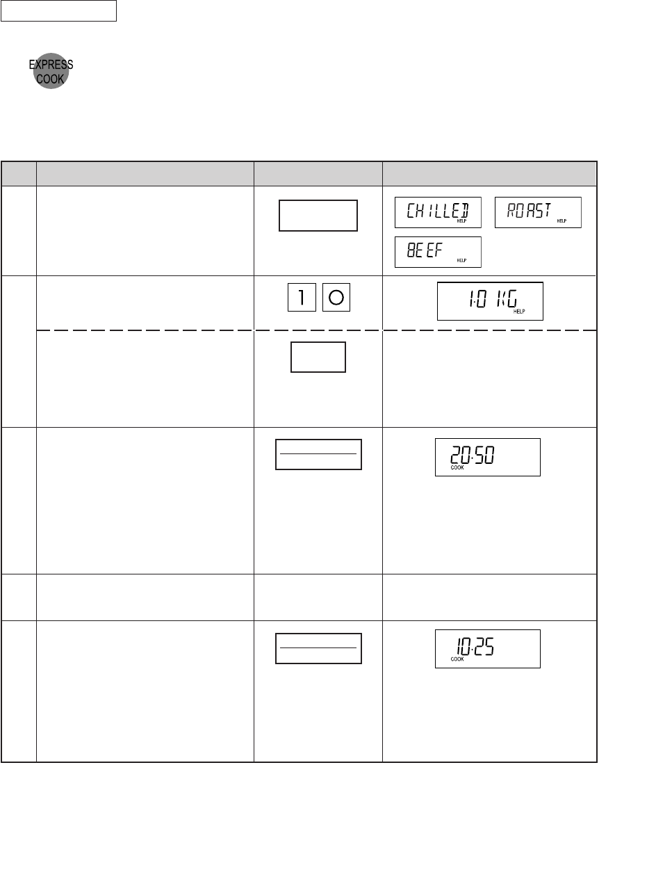 * Suppose you want to use Express Cook to cook 1.0 kg Roast Beef Chilled (Med.).