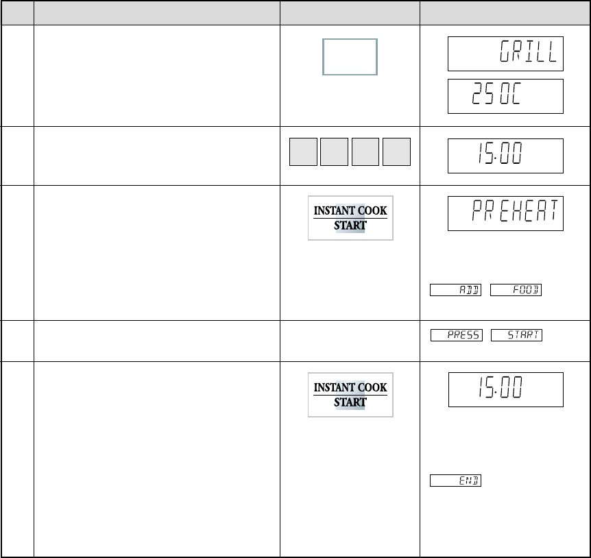 Preheating is automatic when the GRILL setting is used. Only actual cooking time is entered; the oven signals