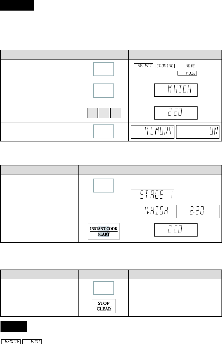 NOTE : If you wish to enter more than two stages cooking, repeat step 2 and 3 after step 3.