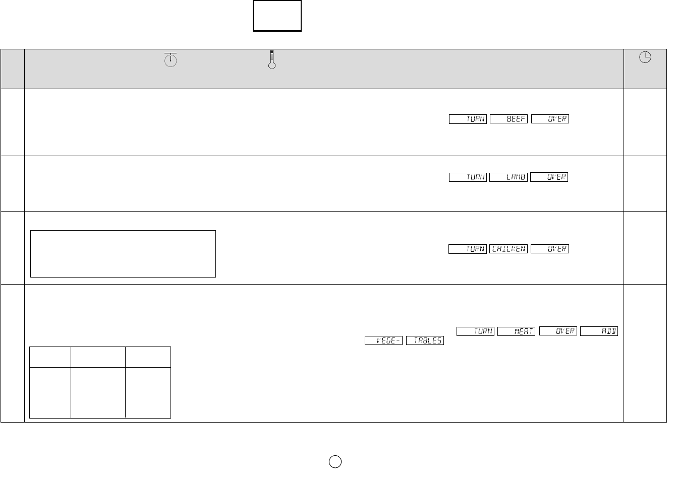 The final cooking result will vary according to the food condition (e.g. initial temperature, shape, quality). Check the food after cooking and if necessary continue cooking manually.