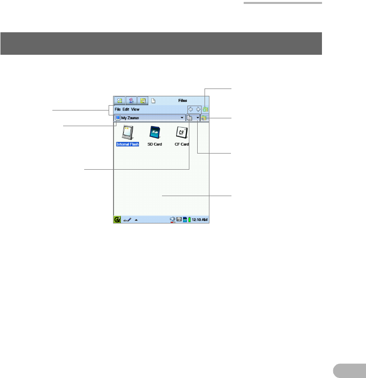 When “My Zaurus” is selected in the folder menu, the “Internal Flash” folder will be