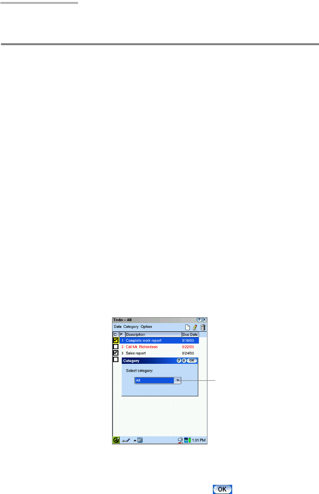 Viewing the entries of a specified category only