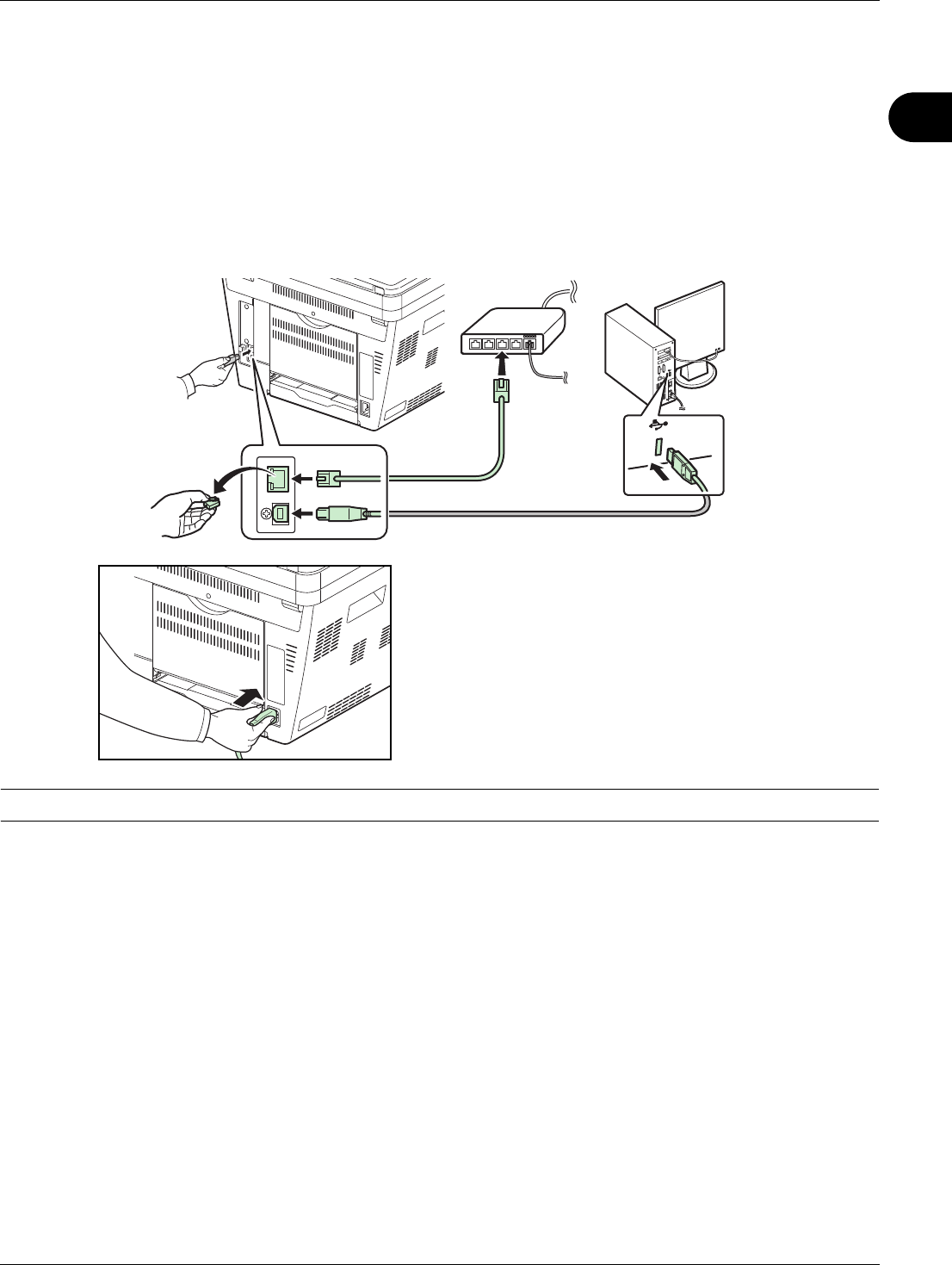 1 Connect the machine to the PC or your network device.
