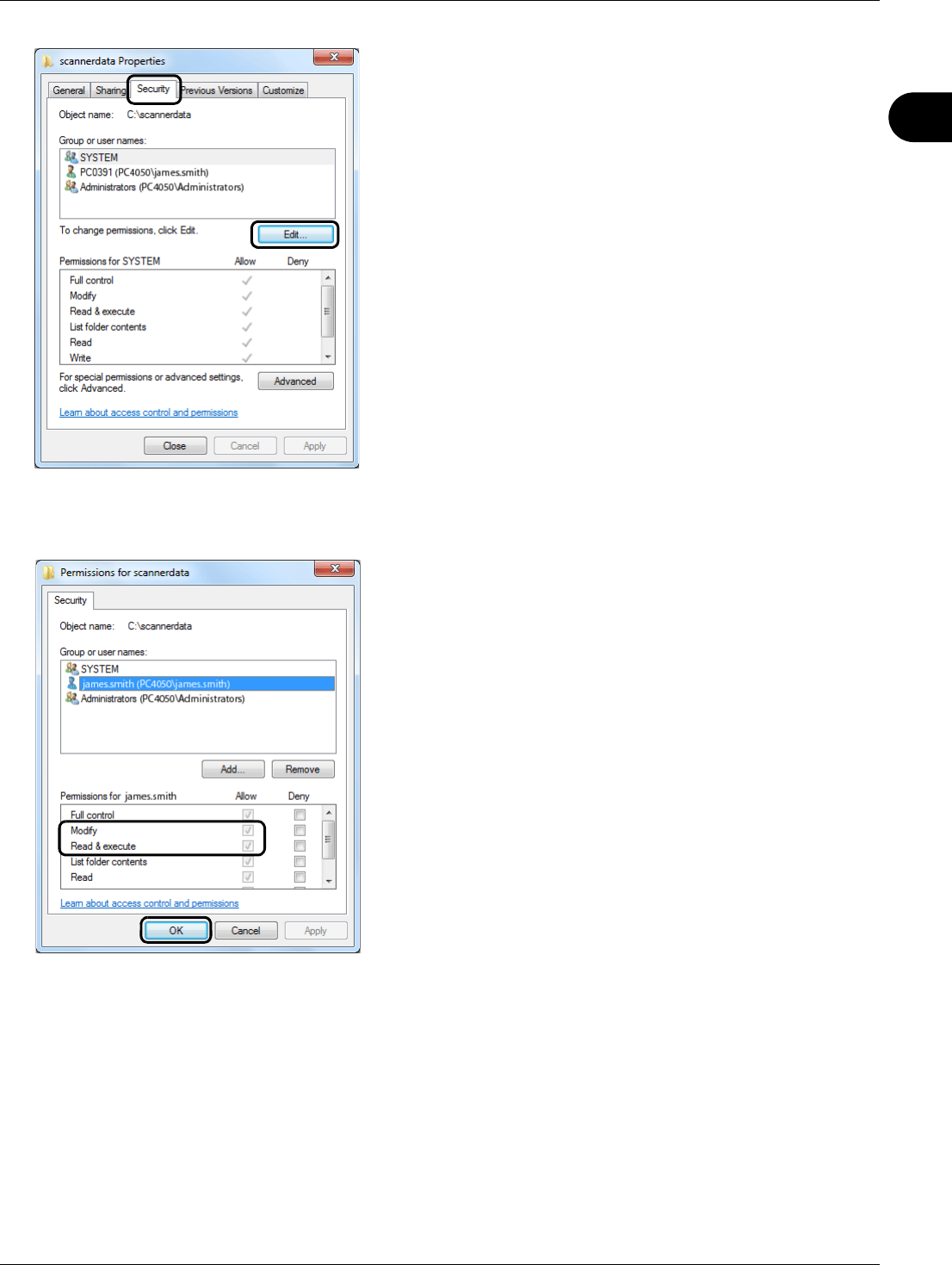 8 Click the Security tab and then click the Edit button.