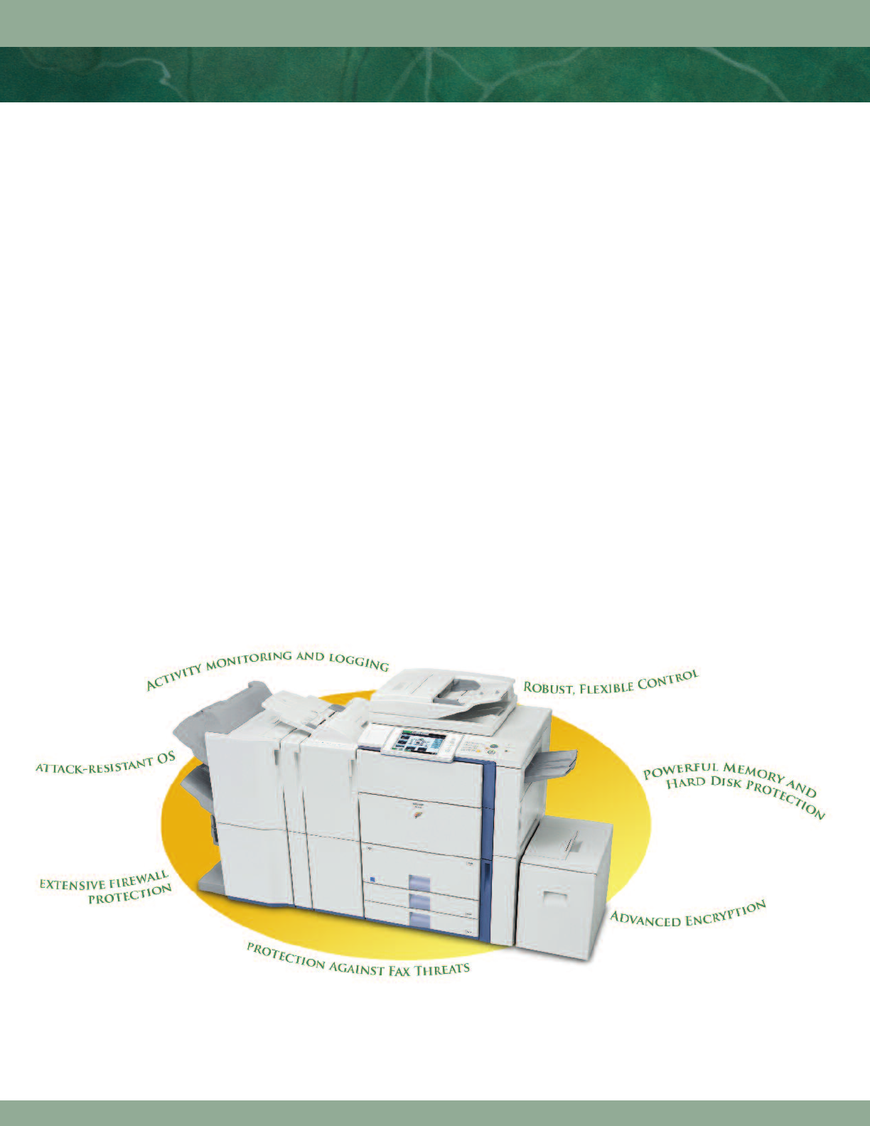 Sharp was the first to address security in digital imaging and received the first Common Criteria Validation for an MFP in 2001. Even