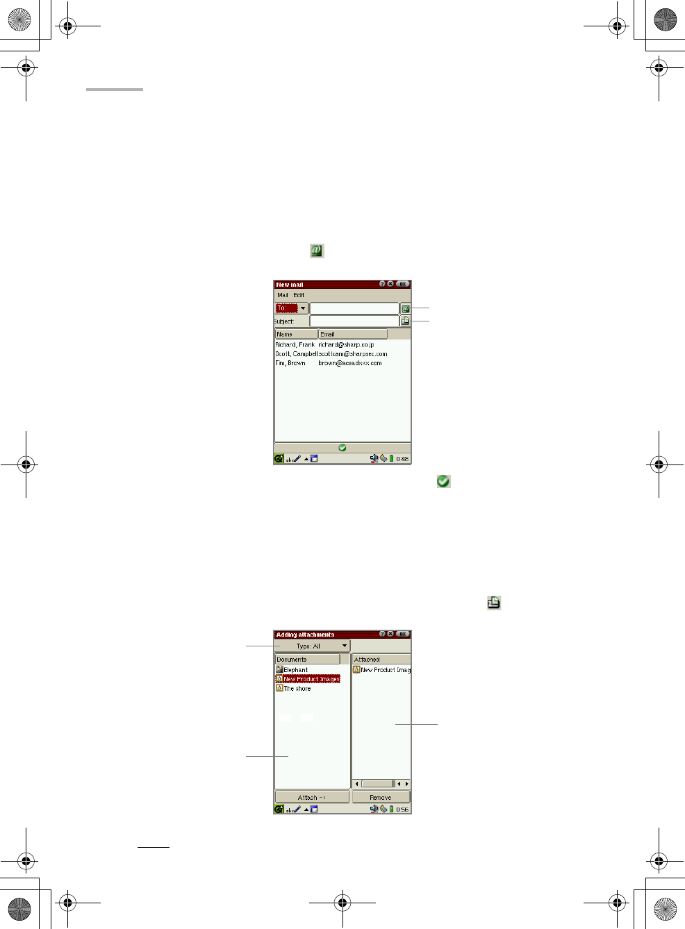 • Tap the Address Book icon ( ) on the New mail screen. The e-mail
