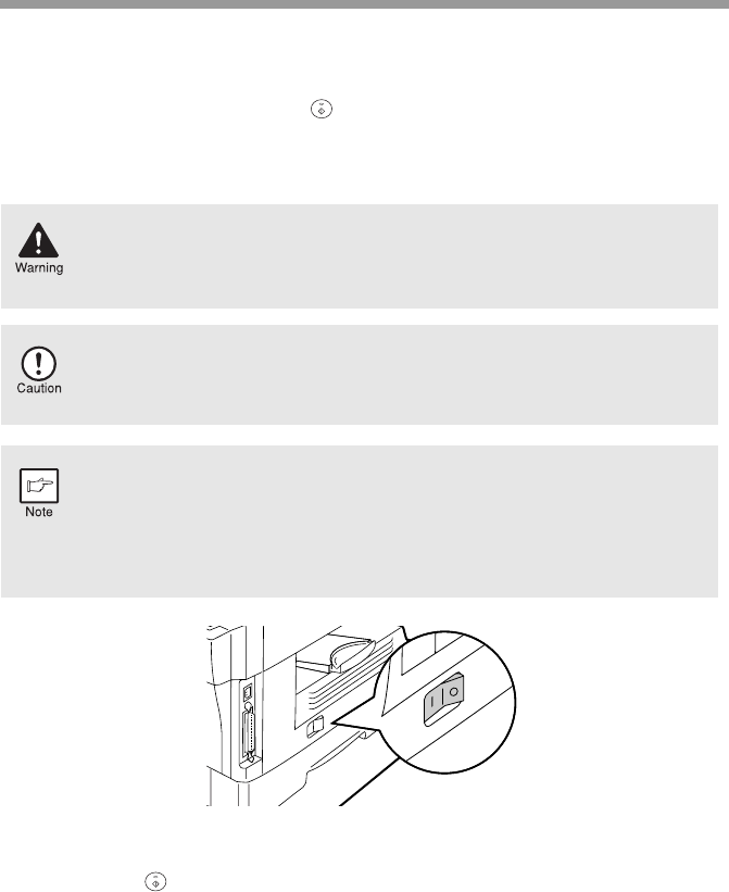 the power cord into the nearest outlet. Turn the power switch on the left side of the