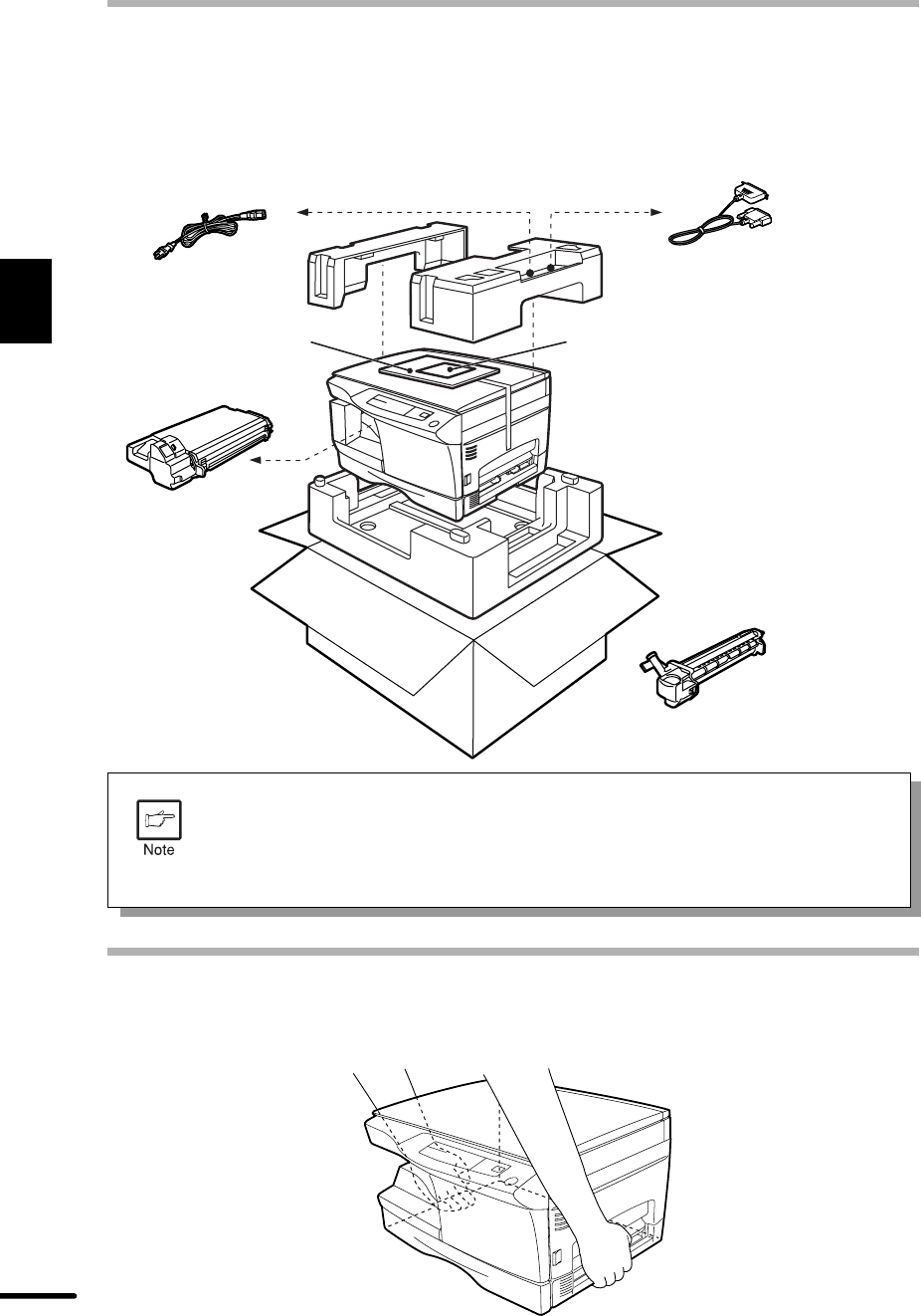 Be sure to hold the handles on both sides of the copier to unpack the copier and carry it to the